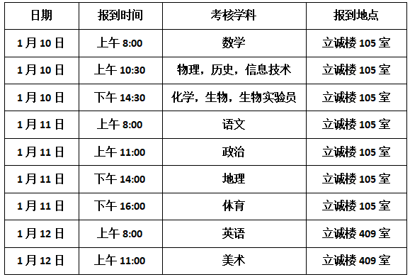 根据莆田市市直学校公开招聘2026年新任教师方案,我校定于2026年1月10-12日在福建师范大学旗山校区进行面试考核工作,现结合网上报名情况,将各学科报到时间及报到地点安排如下: