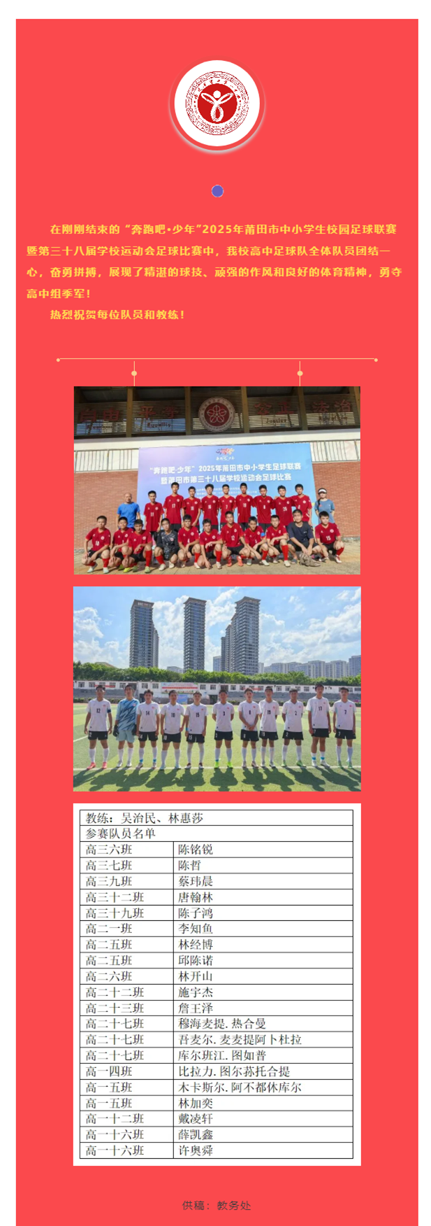 热烈祝贺我校足球队勇夺莆田市中小学生校园足球联赛高中组季军