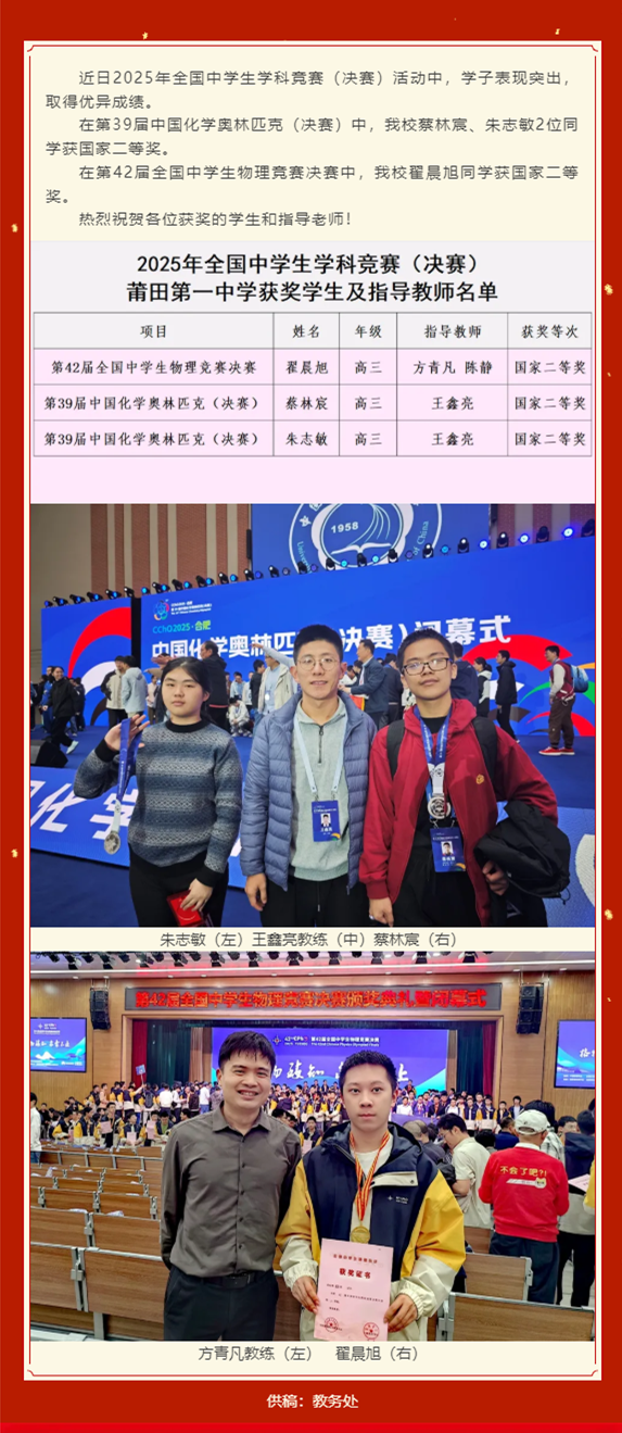 热烈祝贺我校学子在2025年全国中学生学科竞赛(决赛)活动中取得优异成绩