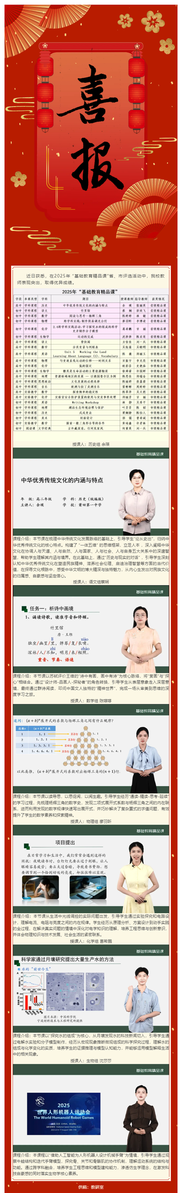 热烈祝贺我校教师在2025年“基础教育精品课”评选活动中取得佳绩