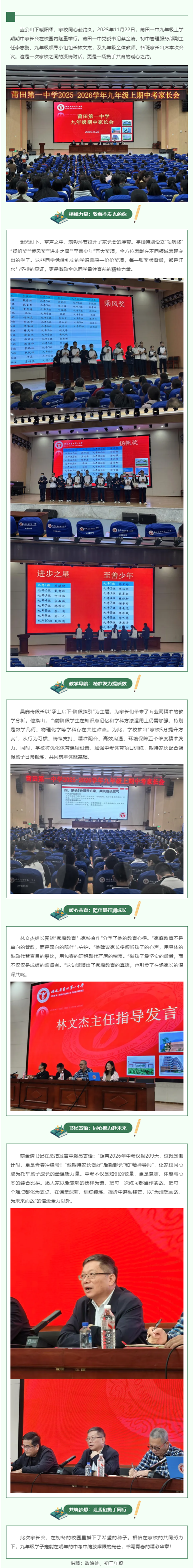家校同心筑梦 聚力冲刺中考——莆田一中九年级期中家长会圆满举行