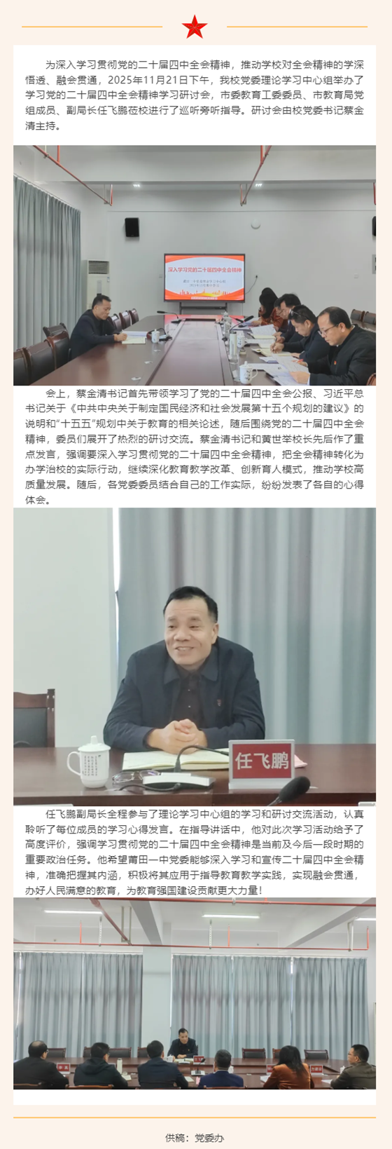 莆田一中党委理论学习中心组举办学习党的二十届四中全会精神学习研讨会