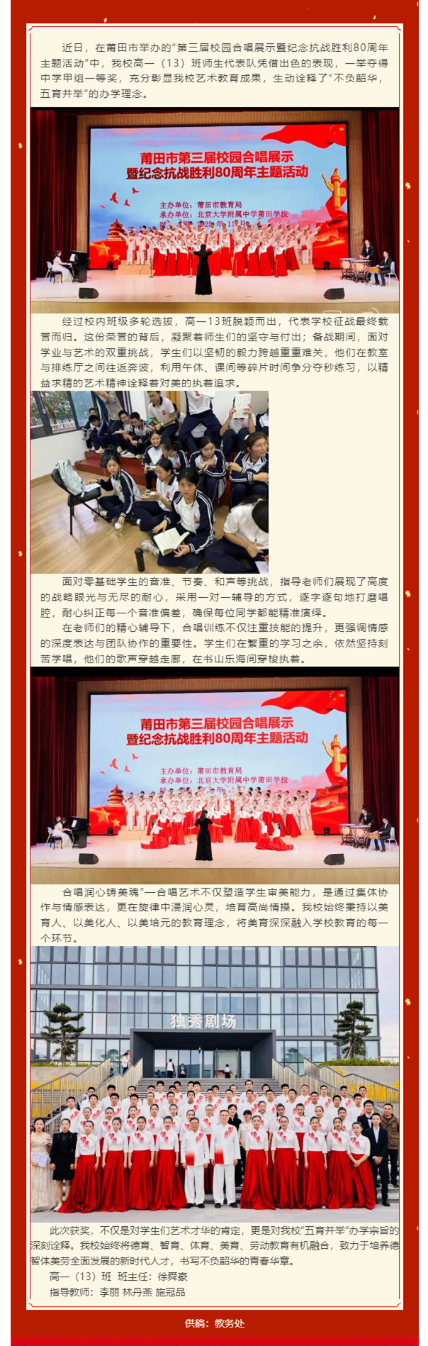 弦歌不辍扬风采 五育并举结硕果——我校代表队在市合唱展示活动中荣获一等奖