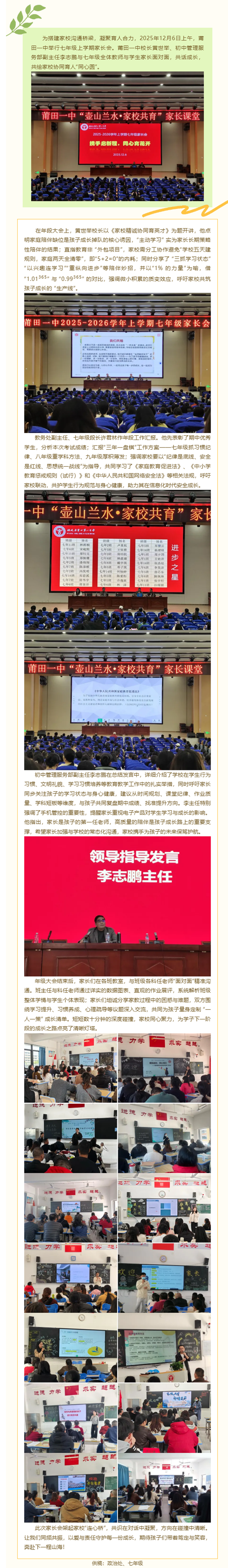 携手启新程 同心育花开——莆田一中七年级期中家长会成功举行