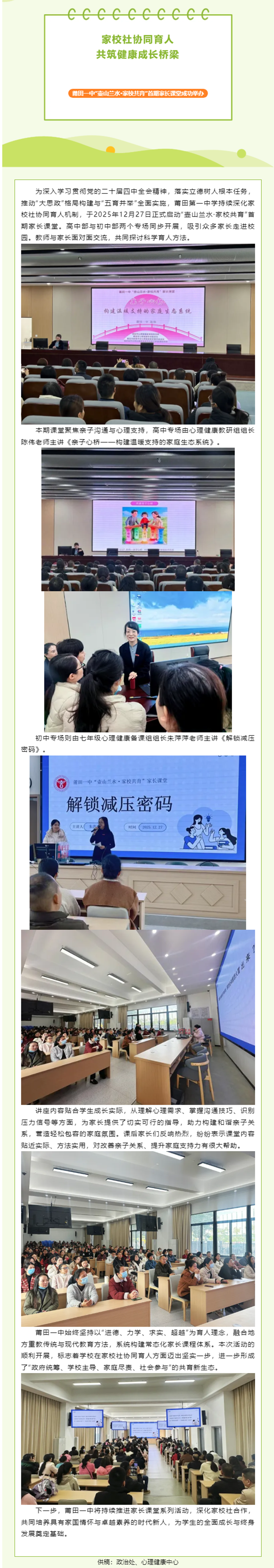 家校社协同育人 共筑健康成长桥梁——莆田一中“壶山兰水·家校共育”首期家长课堂成功举办