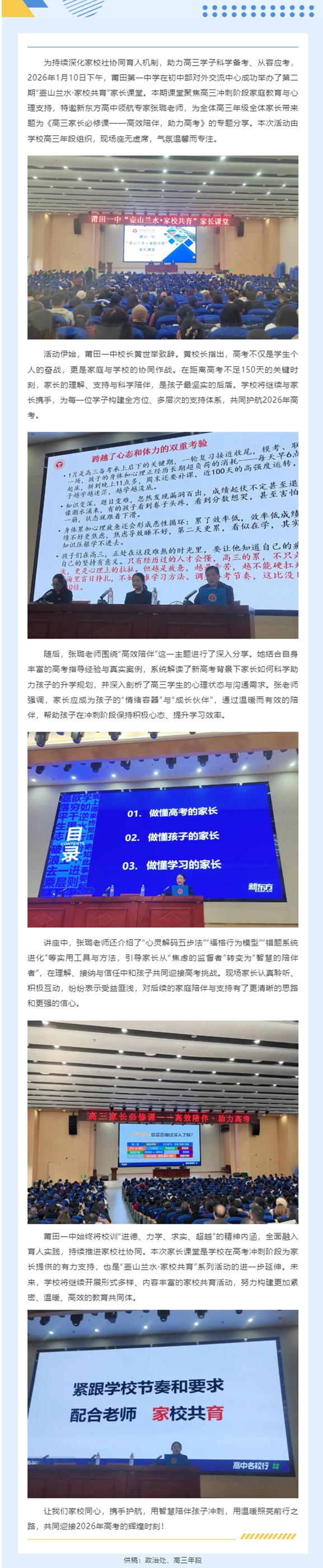 家校同心共护航 高效陪伴助高考——莆田一中第二期“壶山兰水·家校共育”家长课堂顺利举办