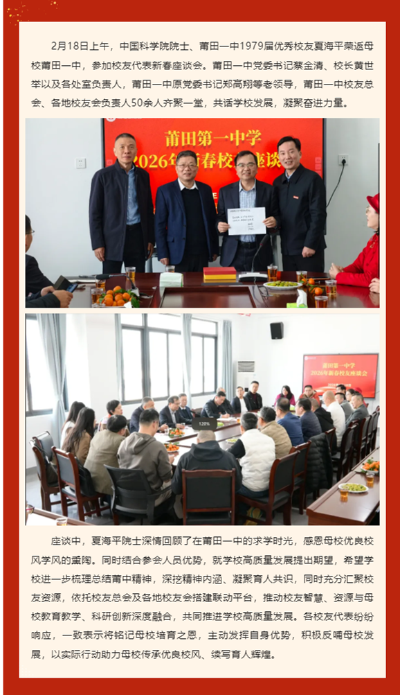 夏海平院士荣返母校莆田一中共促学校高质量发展
