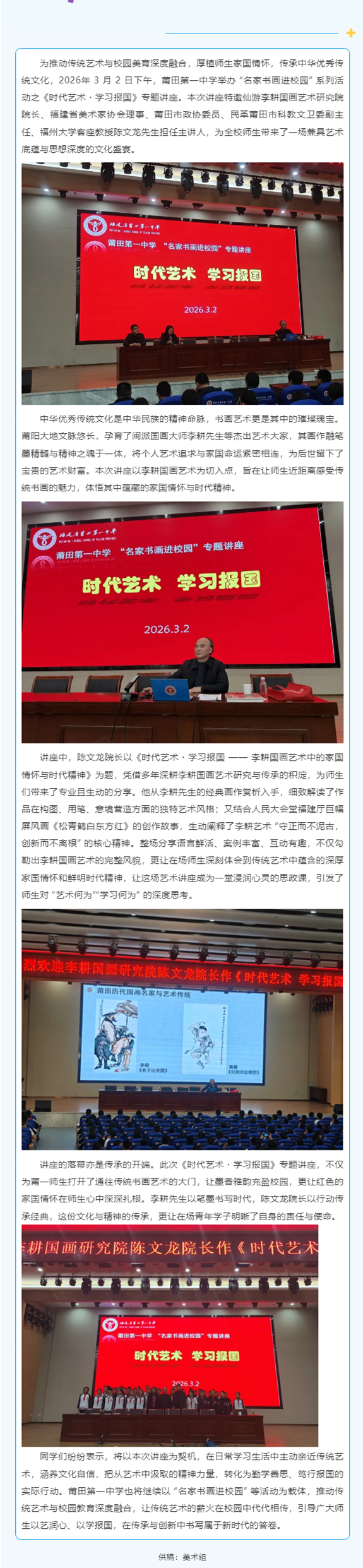 墨香润校园 艺心映家国—— 莆田第一中学《时代艺术・学习报国》专题讲座圆满举办