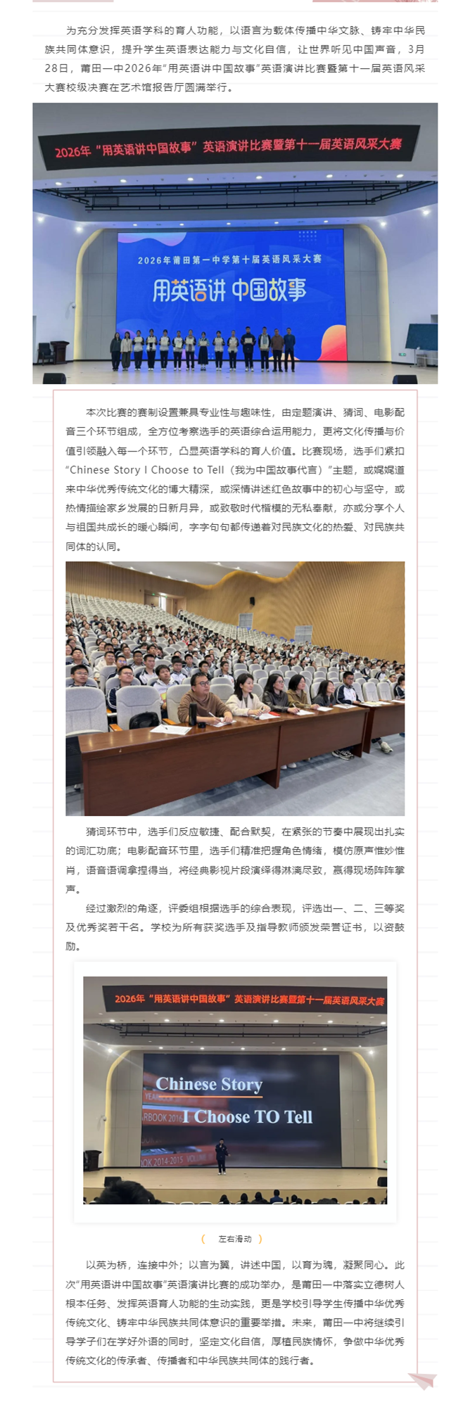 以英为媒述中国 少年风采绽莆中——莆田一中2026年“用英语讲中国故事”英语演讲比赛圆满落幕