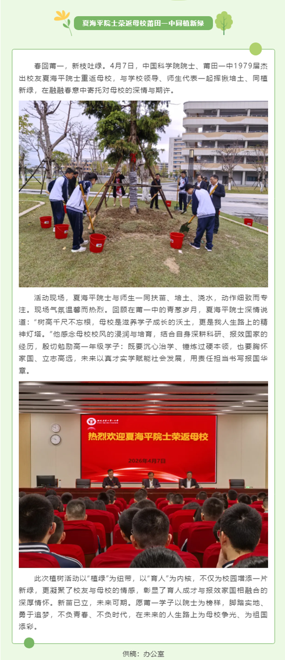 植绿传薪 家国同心——夏海平院士荣返母校莆田一中同植新绿