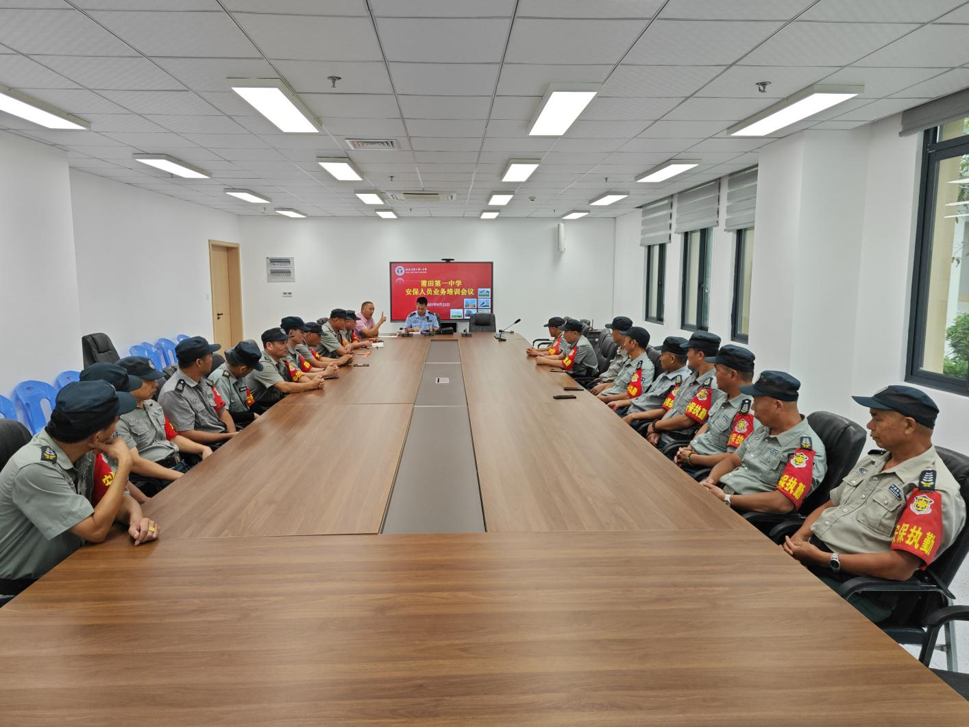 -莆田一中开展安保人员技能培训活动- 为进一步提升校园保安队伍的专业素养和应急处置能力,切实筑牢校园安全屏障,确保校园安全稳定,9月23日下午,莆田一中诚邀新度派出所辖区民警何成志警官到校,联合开展了安保人员技能培训和最小应急单元实战演练活动,切实提升校园应对突发事件的处置能力,为师生安全保驾护航。本次培训活动分为理论知识讲解与实践操作演练两大部分。