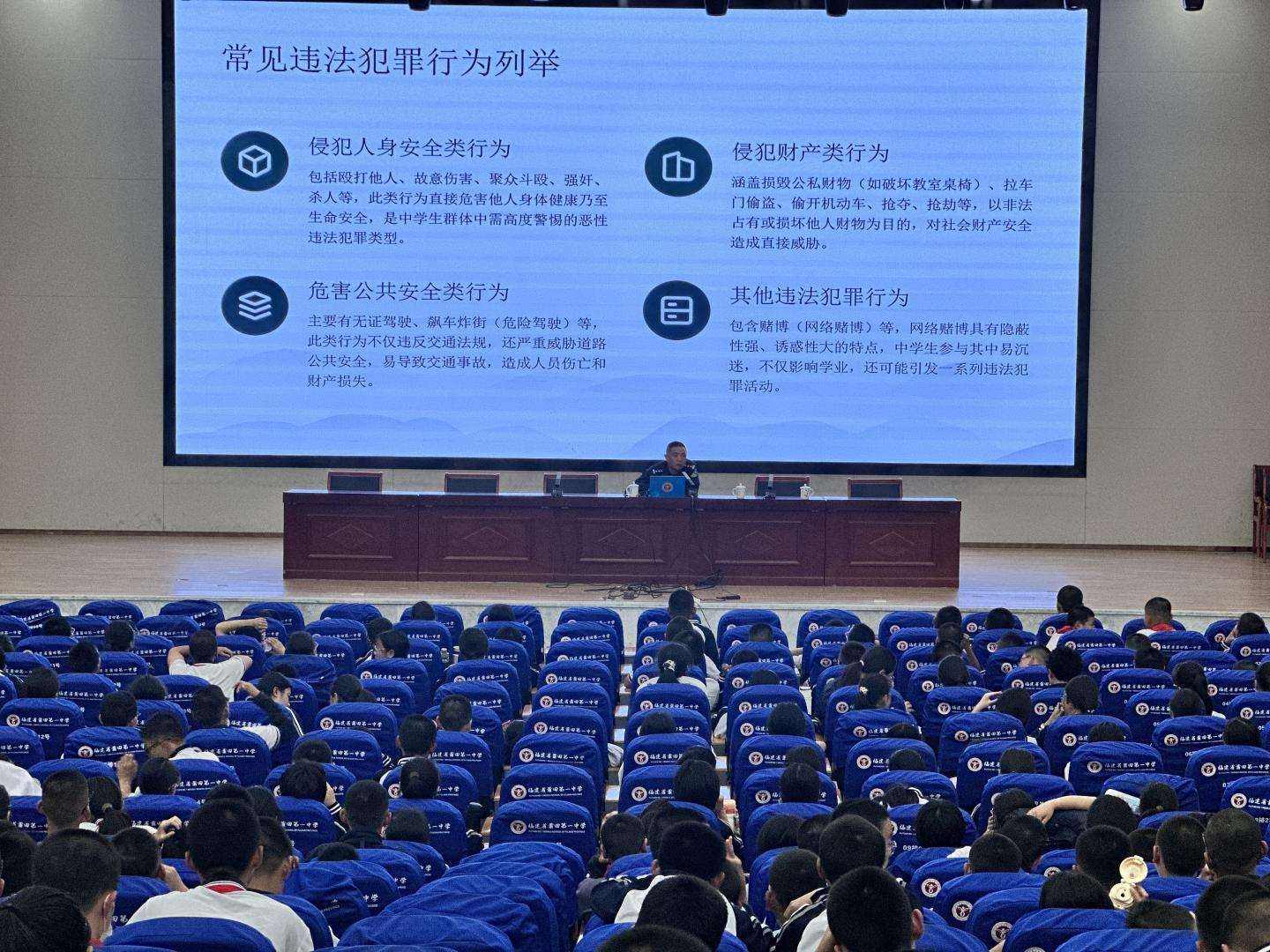 讲座中,王警官结合未成年人的心理特点和认知水平,用通俗易懂的语言,深入浅出地讲解了《中华人民共和国预防未成年人犯罪法》的相关知识。通过剖析贴近学生生活的真实案例,详细阐述了不良行为与违法犯罪之间的界限与关联,分析了未成年人容易涉及的盗窃、欺诈等常见法律风险,并引导学生们思考如何避免陷入法律误区。