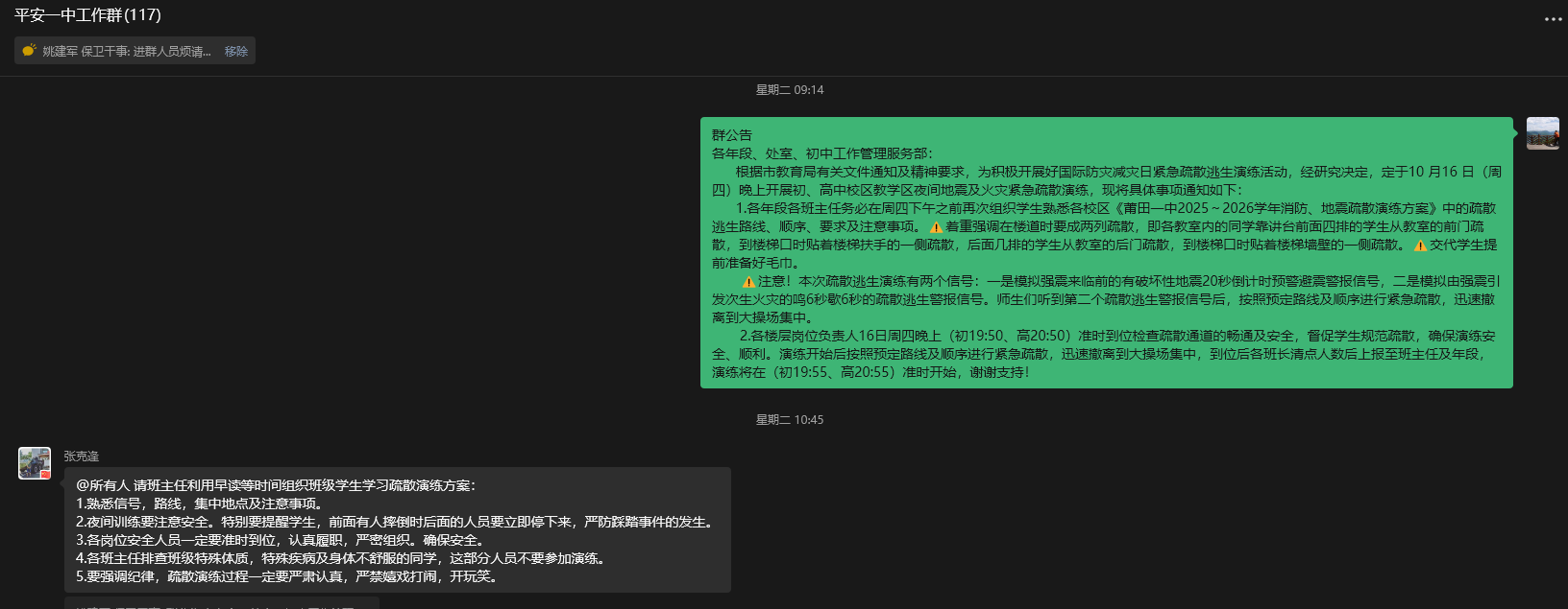 二、真“演”实“练”,掌握避险 “真技能” 为了让同学们将理论知识转化为实际行动,提高应急逃生能力,10月16日学校组织了一场紧张有序的教学区夜间地震应急疏散演练。演练前,学校制定了详细的演练方案,明确了各班级的疏散路线和教师的职责分工,并提前向同学们讲解了演练的注意事项。随着警报声响起,同学们迅速按照预定的疏散路线,快速有序地撤离到操场安全区域。整个演练过程紧张而不慌乱,达到了预期的演练效果。