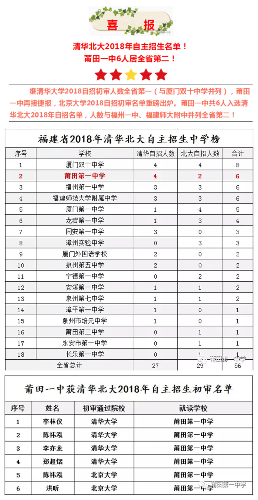 【捷报再传】“好果”,我的一中!莆田一中6人入选清华北大2018自招,全省第二!