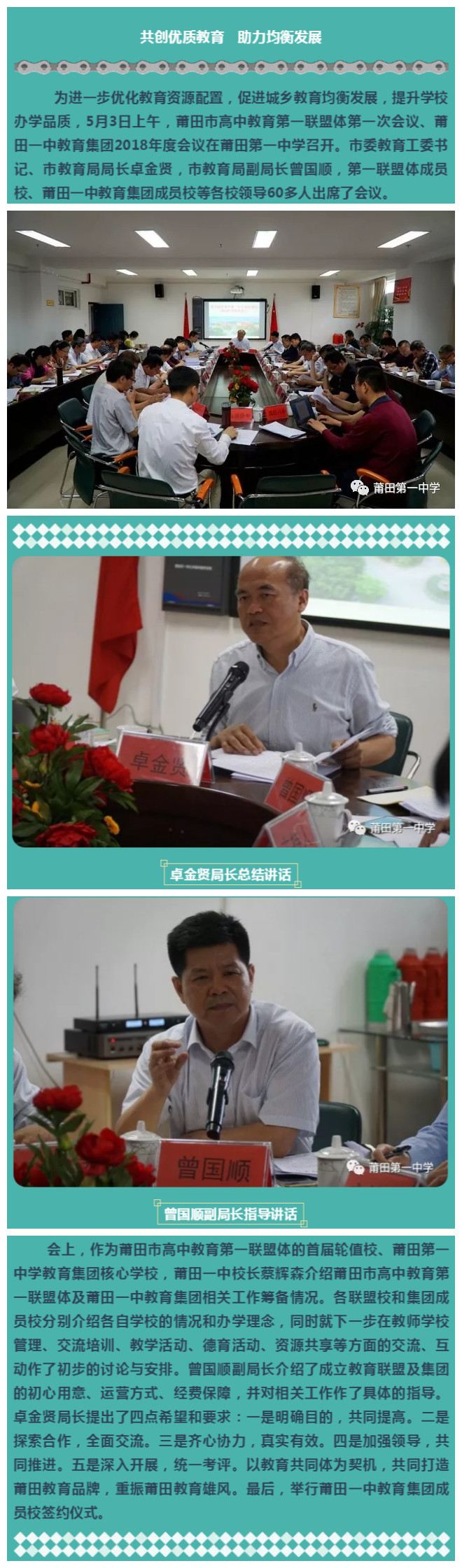 【学校新闻】莆田市高中教育第一联盟体第一次会议、莆田一中教育集团2018年度会议在我校隆重召开