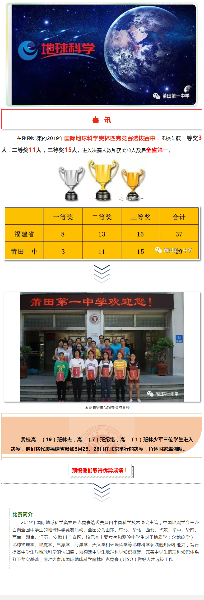 【喜讯】热烈祝贺我校在2019年国际地球科学奥林匹克竞赛选拔赛中取得优异成绩!