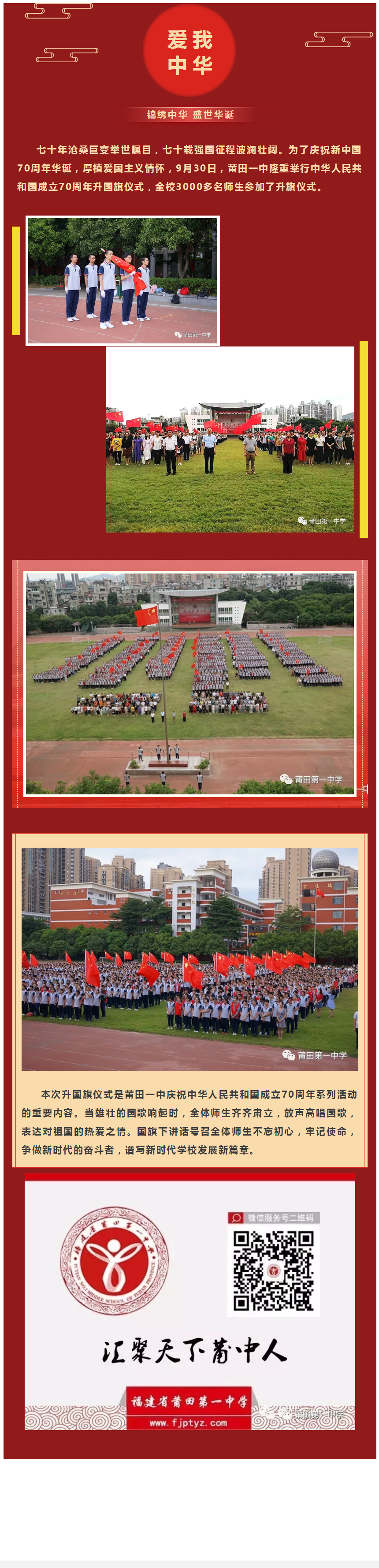 莆田一中举行庆祝中华人民共和国成立70周年升国旗仪式