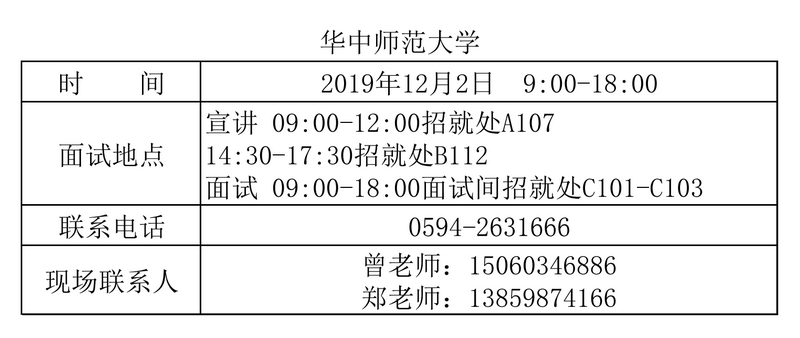 华中师范大学现场招聘会地点通知