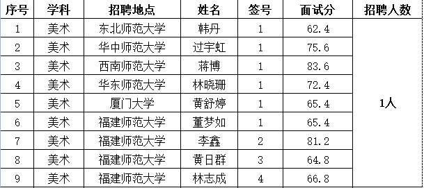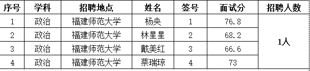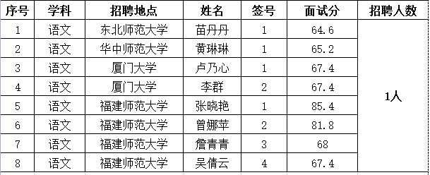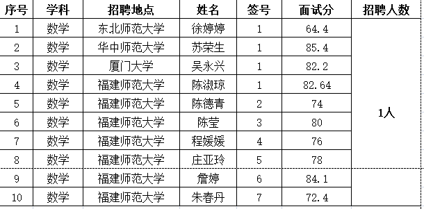 2020年莆田一中新教师招聘面试成绩公示