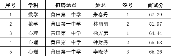 莆田第一中学2020年紧缺教师招聘考核成绩公示