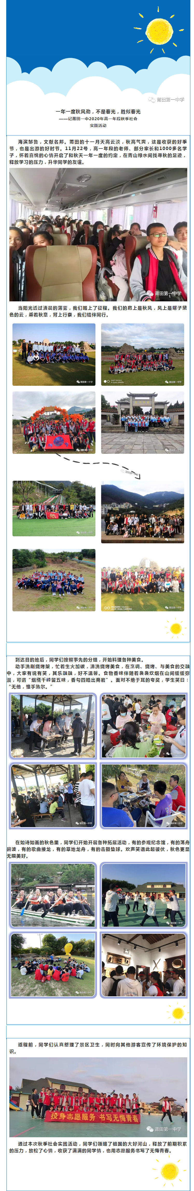 一年一度秋风劲,不是春光,胜似春光 ——记莆田一中2020年高一年段秋季社会实践活动