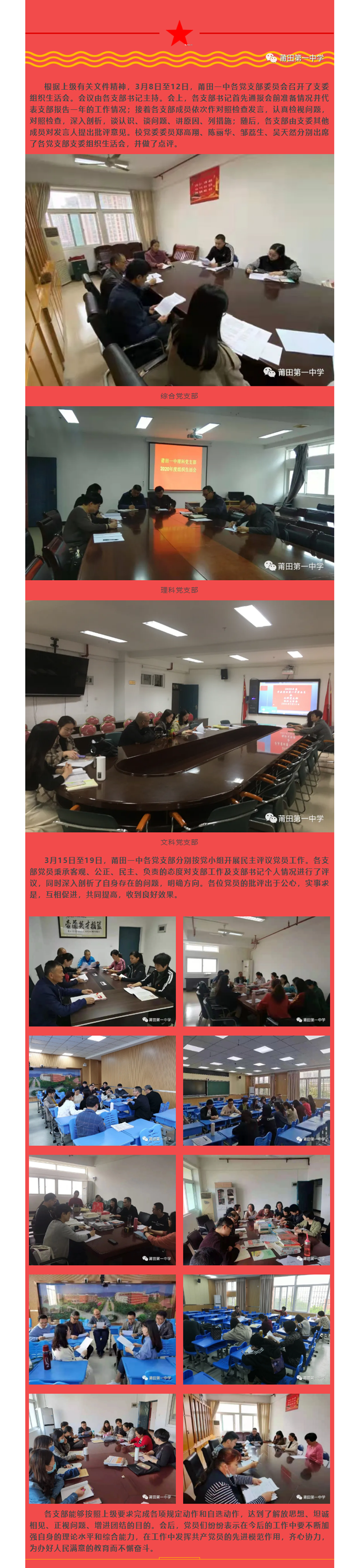 莆田第一中学各党支部召开2020年度组织生活会和开展党员民主评议工作