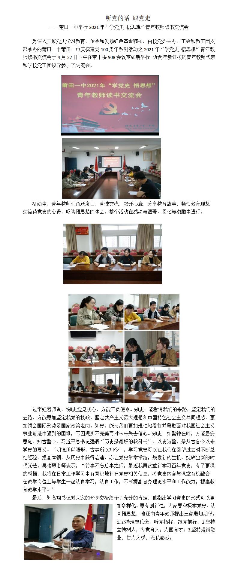 听党的话 跟党走 ——莆田一中举行2021年“学党史 悟思想”青年教师读书交流会