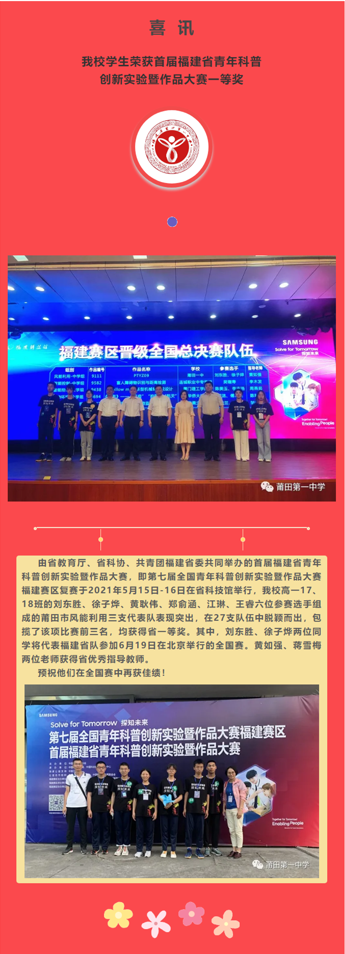 【喜讯】我校学生荣获首届福建省青年科普创新实验暨作品大赛一等奖