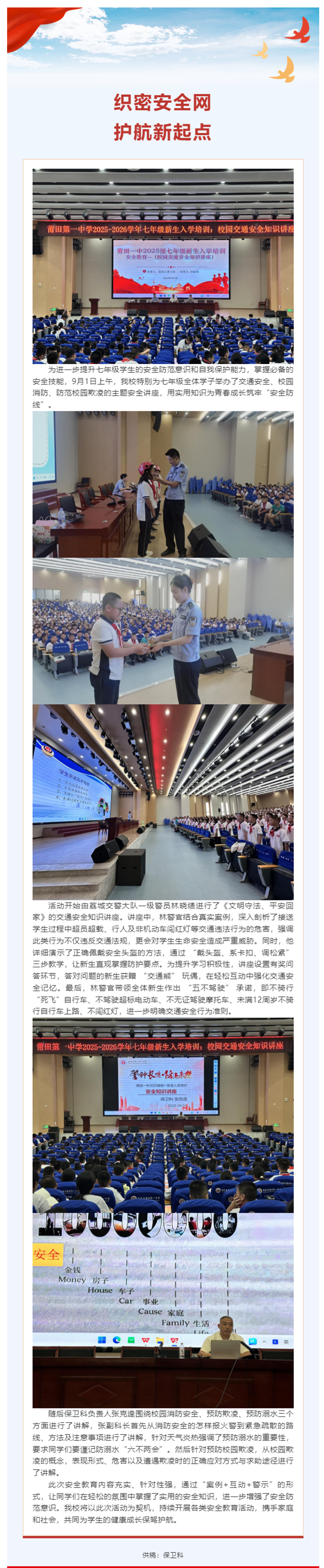 织密安全网 护航新起点!莆田一中2025级七年级新生开展安全知识专题讲座