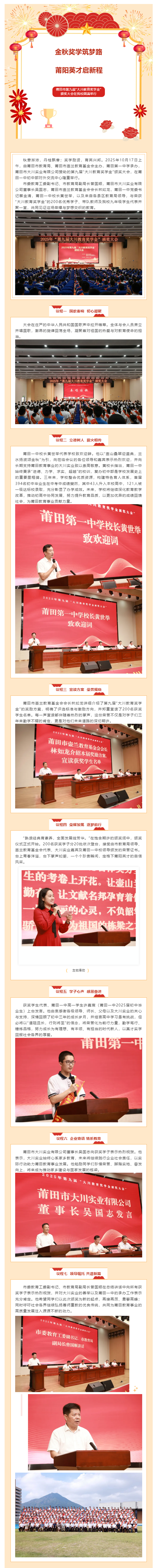 金秋奖学筑梦路 莆阳英才启新程——莆田市第九届“大川教育奖学金”颁奖大会在我校圆满举行