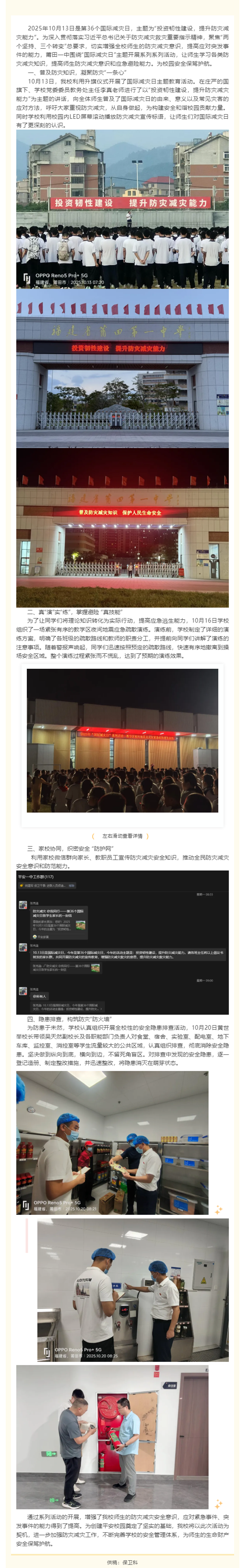 筑牢安全防护网 打赢防灾主动仗——莆田一中开展“国际减灾日”系列活动