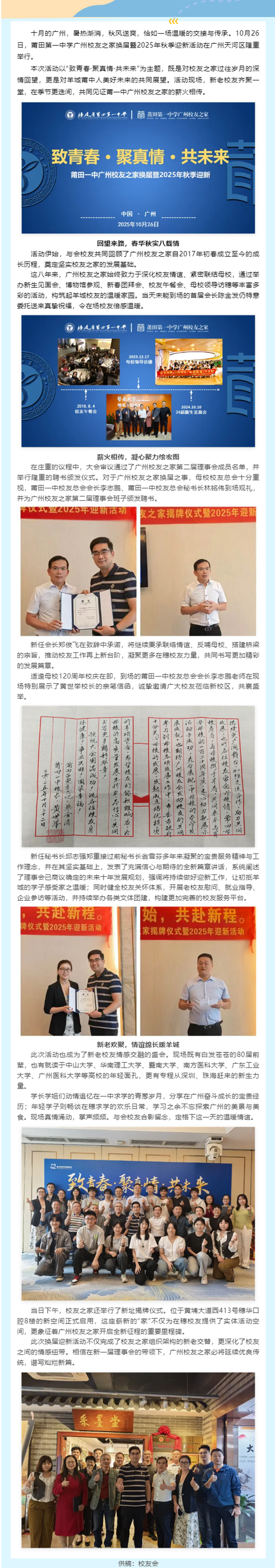 风起珠江 又续华章——莆田第一中学广州校友之家换届暨迎新活动顺利举行