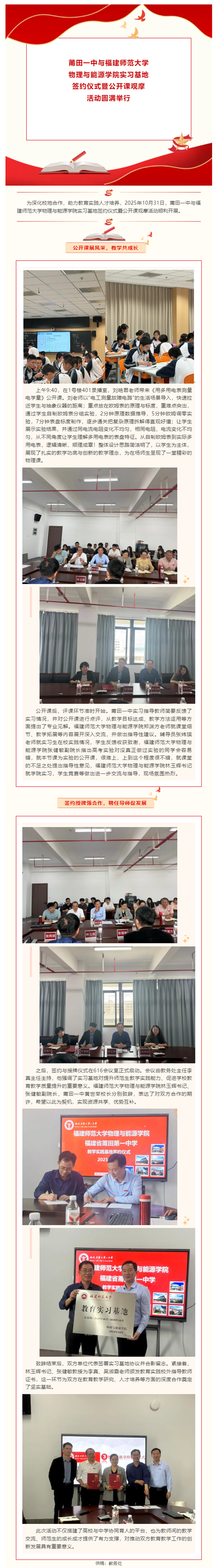 莆田一中与福建师范大学物理与能源学院实习基地签约仪式暨公开课观摩活动圆满举行