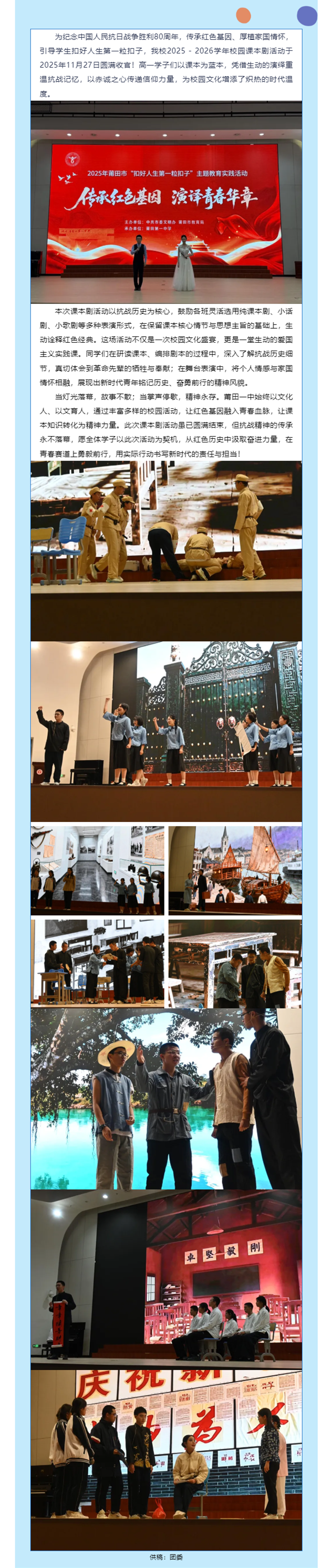 烽烟八秩凝初心 剧映课本传薪火——莆田一中2025-2026学年校园课本剧活动