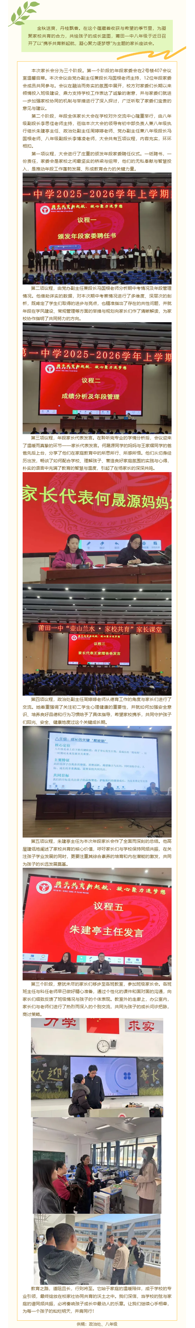 携手共育新起航 凝心聚力逐梦想——我校八年级召开上学期家长会