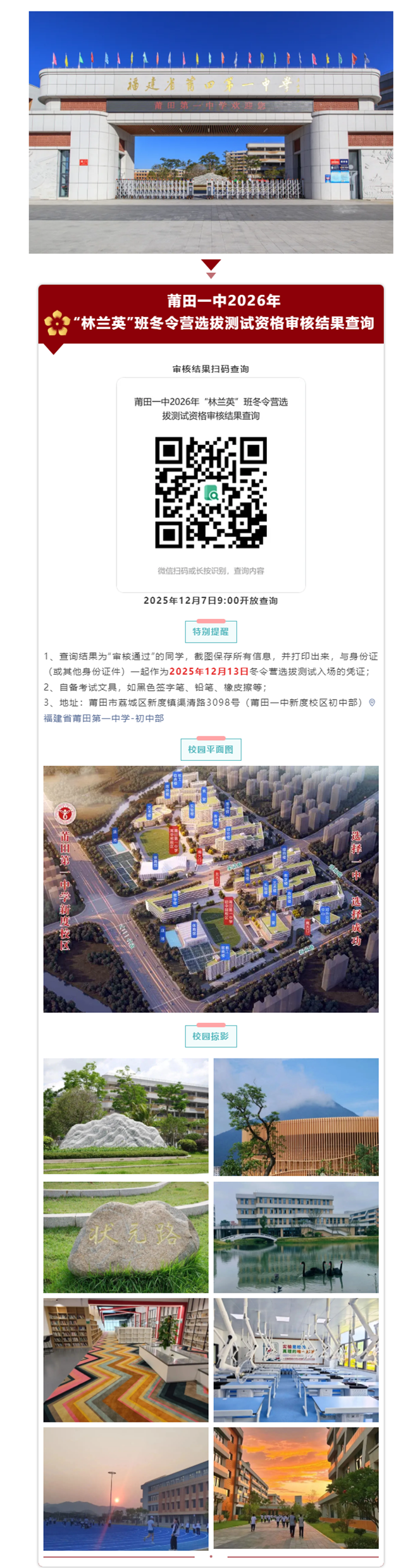 莆田一中2026年“林兰英”班冬令营选拔测试资格审核结果查询
