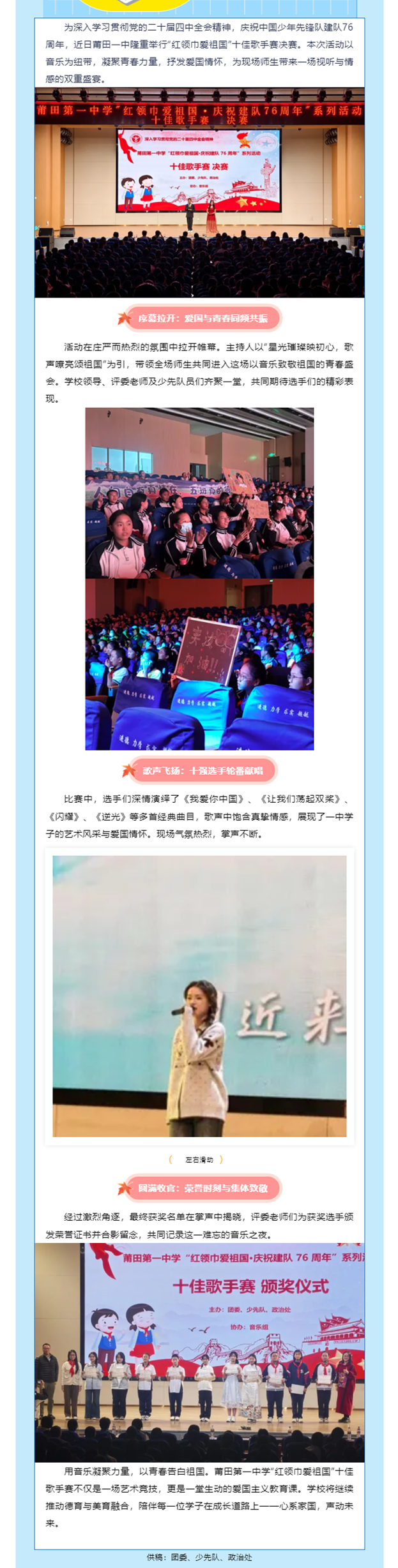 莆田一中2025年“红领巾爱祖国”十佳歌手赛圆满落幕