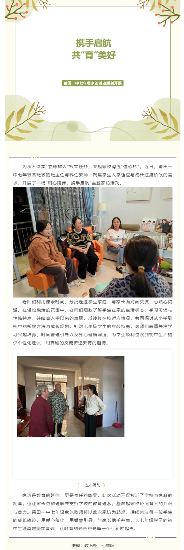 携手启航 共“育”美好——莆田一中七年级家访活动顺利开展
