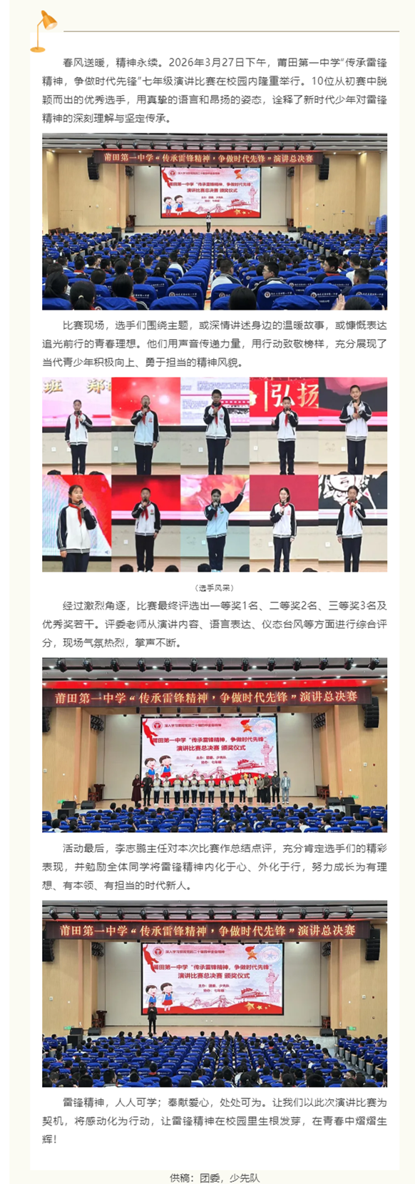 传承雷锋精神 争做时代先锋——莆田第一中学演讲比赛圆满举行