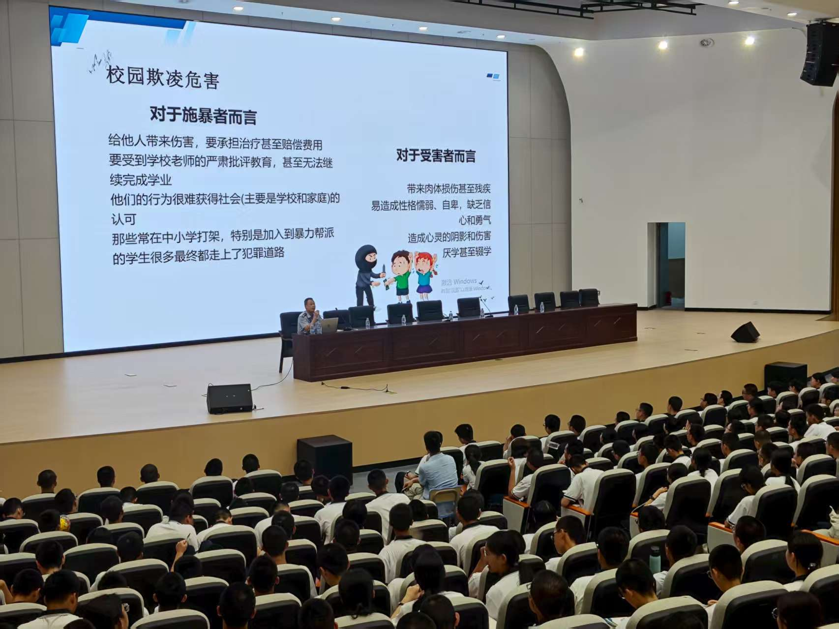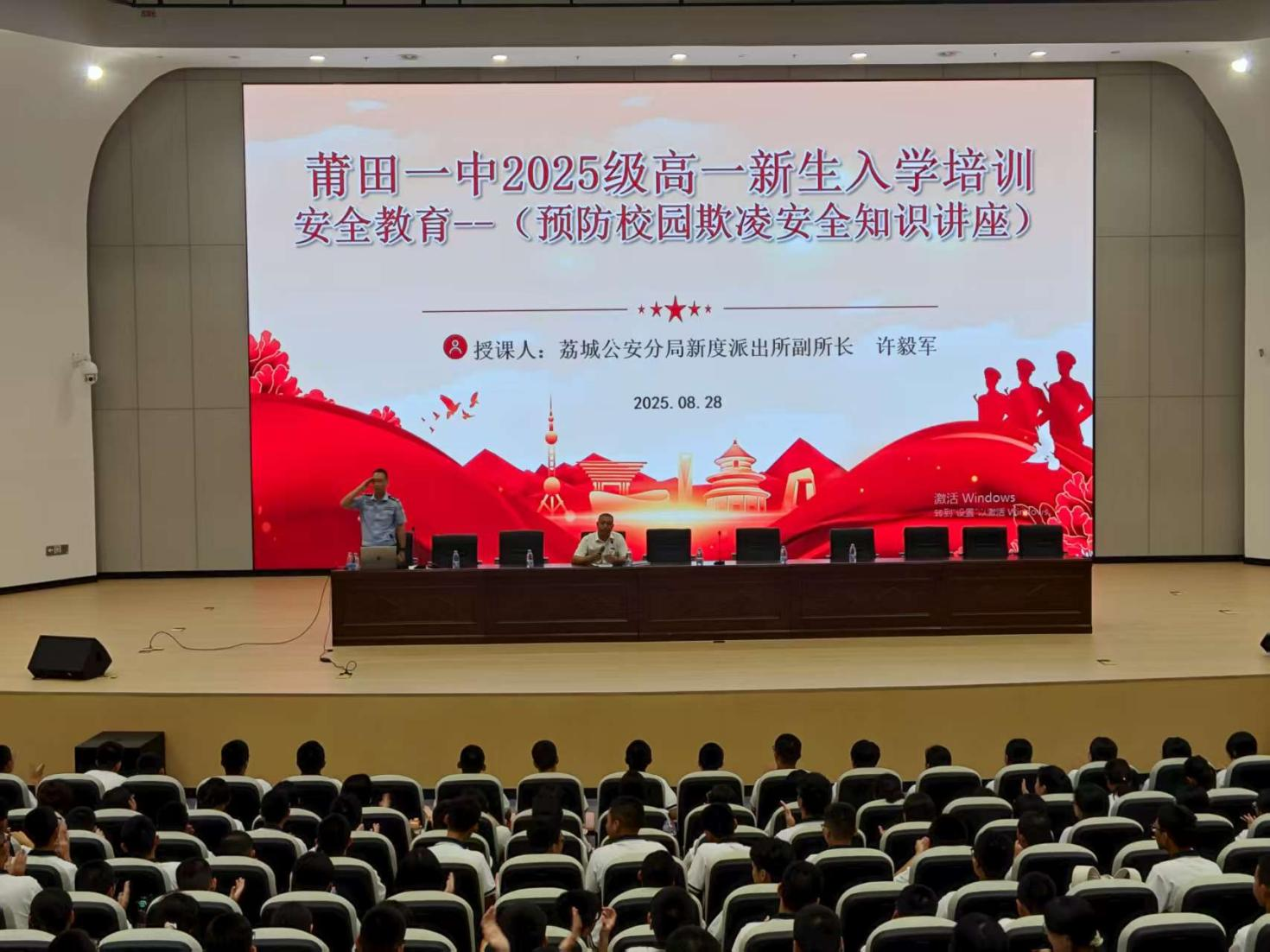 莆田一中开展“预防校园欺凌”安全知识讲座 为增强莆田一中2025级高一新生的安全防范意识,有效预防校园欺凌事件的发生,营造和谐、安全的校园环境,我校于8月28日上午邀请荔城公安分局新度派出所副所长、法治副校长许毅军,为全体高一1000多名师生带来了一场生动且深刻的预防校园欺凌安全知识讲座。