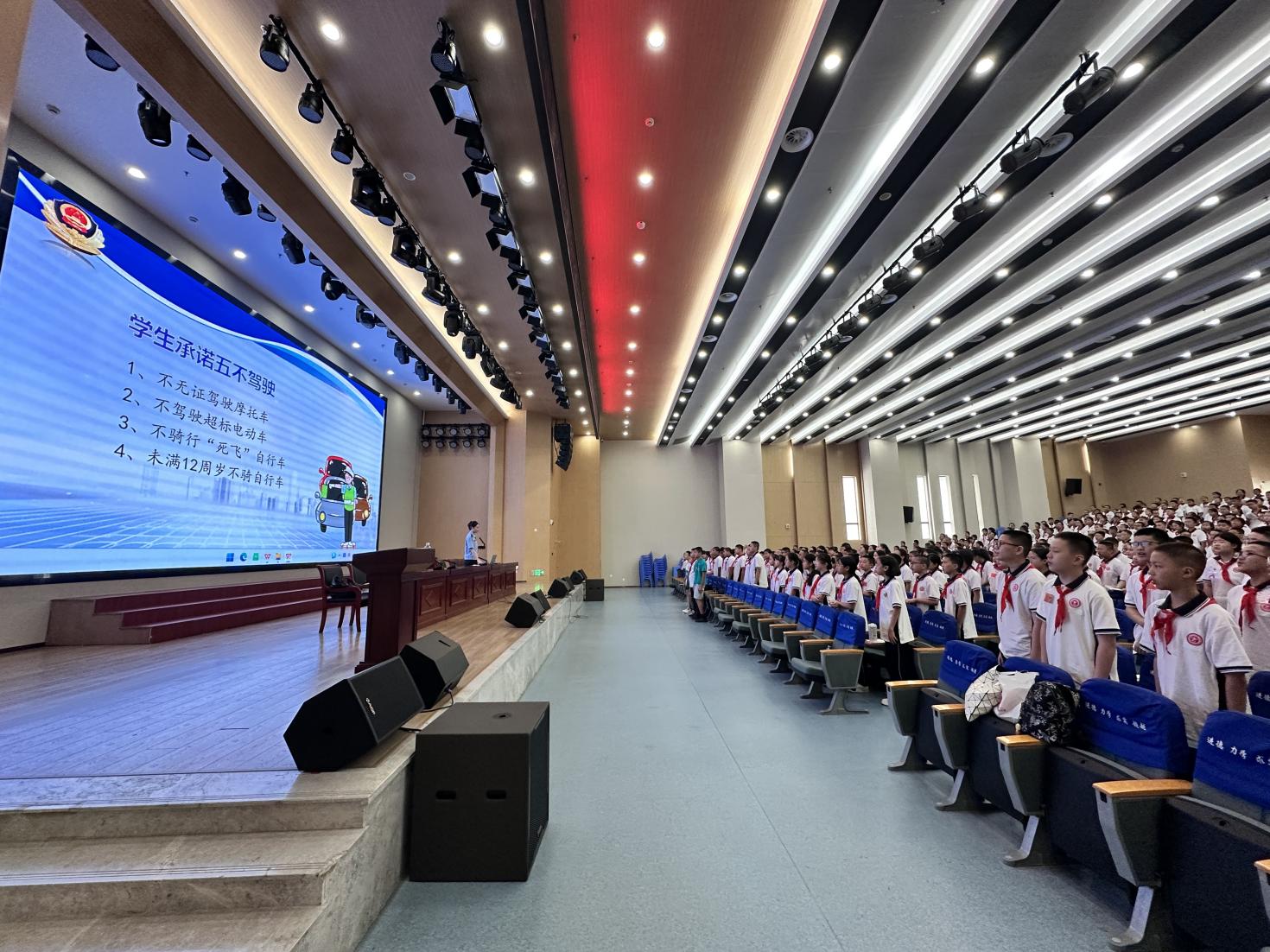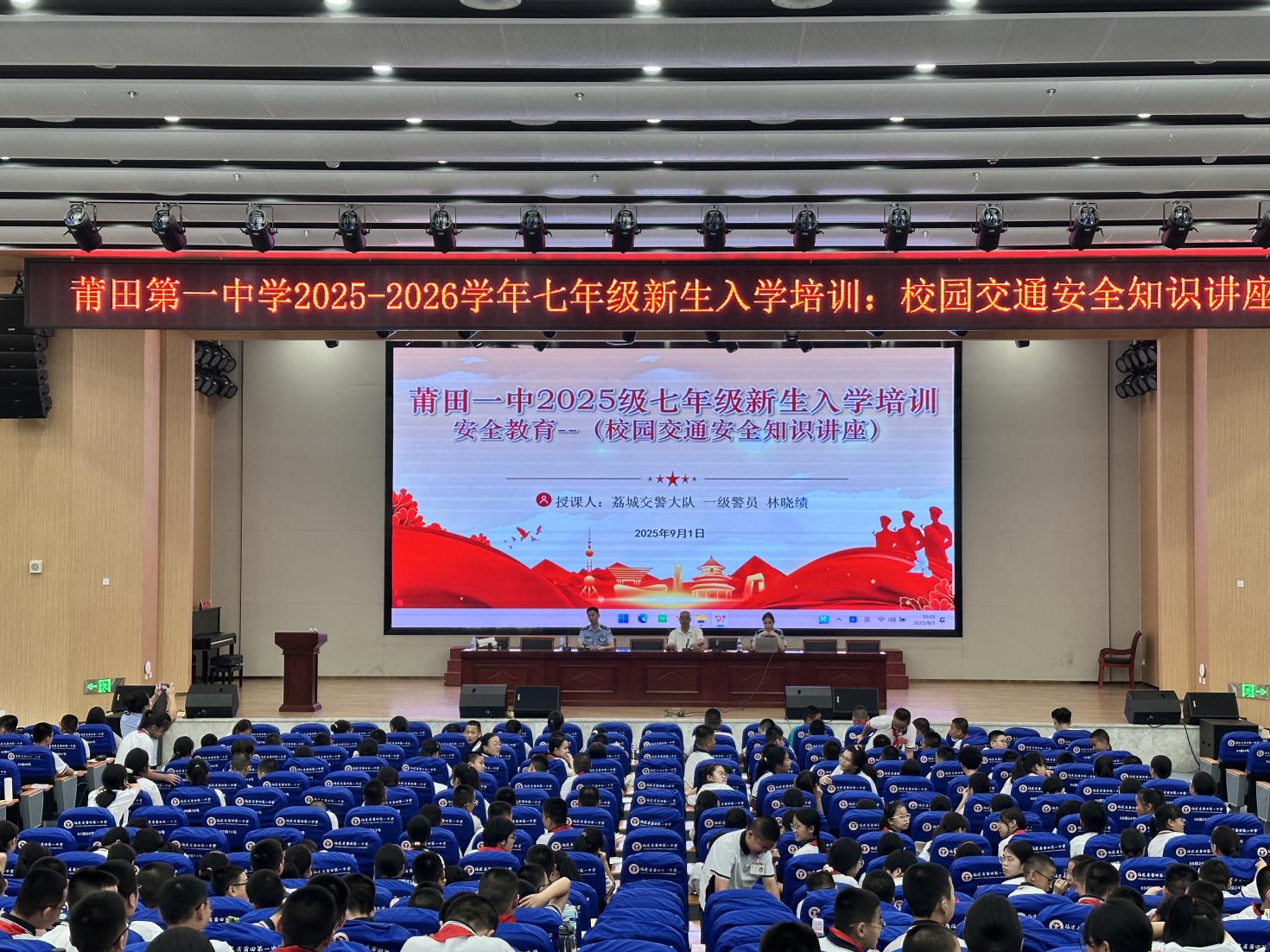 为进一步提升初一学生的安全防范意识和自我保护能力,掌握必备的安全技能,9月1日上午,我校特别为新初一全体学子举办了交通安全、校园消防、防范校园欺凌的主题安全讲座,用实用知识为青春成长筑牢“安全防线”。